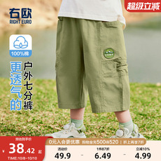 右欧男童七分裤山系纯棉轻薄透气夏季新品童装女童儿童纯色中长裤