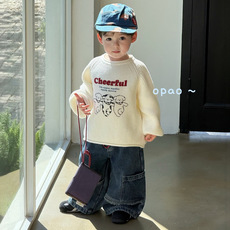 Opao 25秋冬男童卡通印花针织毛衣6005 加绒牛仔工装裤8091