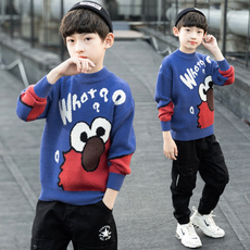 男童毛衣秋冬装新款学院风圆领男孩子套头针织衫纯棉加绒加厚上衣