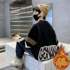 男童毛衣加绒加厚秋冬款2025新款中大童炸街男孩儿童冬季痞帅打底