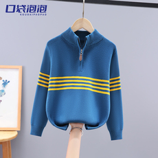男童毛衣新款纯棉针织衫中大童男孩秋冬款加绒加厚立领拉链打底衫