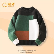 男童毛衣2025秋冬新款儿童针织衫中大童打底衫加绒加厚拼色韩版潮