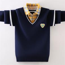男童毛衣秋冬加绒加厚儿童纯棉针织衫假两件中大童洋气男孩打底衫