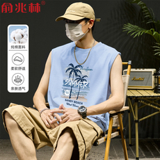 夏季海边度假风椰树纯棉无袖背心男青少年外穿运动休闲跨栏坎肩潮