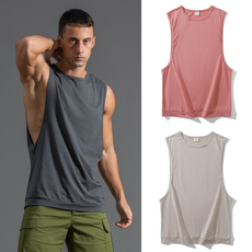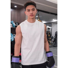 夏季新款纯棉无袖男重磅圆领运动背心健身跑步T恤宽松大码 砍袖男