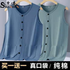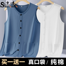 申本夏季中老年人男士纯棉背心爸爸装薄款开衫马甲居家老头衫坎舰