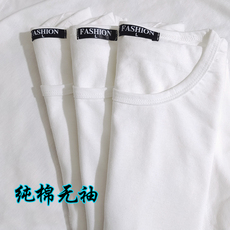 纯棉背心男潮外穿打底宽松运动健身篮球坎肩砍袖宽肩无袖t恤白色
