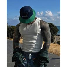欧美硬汉纯棉螺纹背心肌肉男紧身高弹力无袖t恤拼接打底小坎肩潮