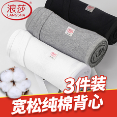 3件装 男士背心中老年纯棉宽肩无袖打底汗衫白色V领短袖圆领全棉
