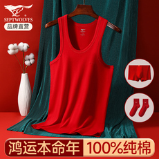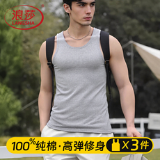 本命年100%纯棉背心男跨栏运动健身弹力修身无袖T恤窄肩打底汗衫