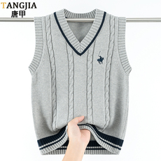 中学生纯棉针织马甲男女学生春秋季厚款刺绣 V领毛背心青少年外搭