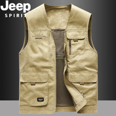 JEEP吉普马甲男士春秋季纯棉多口袋工装背心休闲外穿马夹坎肩外套