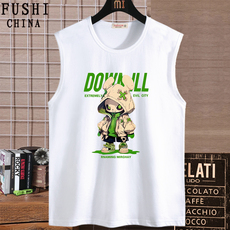 夏季宽肩背心男纯棉印花宽肩百搭无袖T恤衫宽松男士休闲运动坎肩