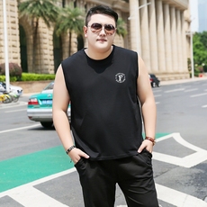 胖子无袖男t恤 夏季纯棉弹力宽松坎肩跨栏背心加肥加大码健身汗衫