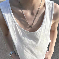 纯棉低领背心男高级感宽松无袖t恤大领外穿小坎肩透气老头汗衫潮