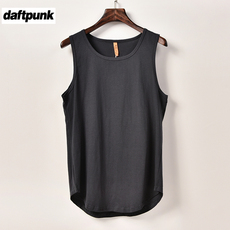 ins运动高街纯棉背心男潮牌坎肩情侣宽松夏季大红圆弧下摆无袖t恤