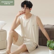 莫代尔无袖睡衣男士夏季背心短裤休闲套装夏天薄款凉感男式家居服