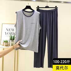莫代尔睡衣男士夏季背心无袖薄款大码夏天冰丝胖子加肥家居服套装