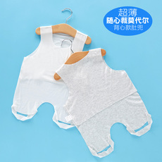 婴儿肚兜背心式0-2岁男女宝宝夏薄连体哈衣无痕随心裁莫代尔短爬