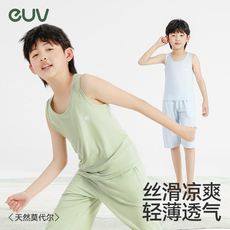euv 男童背心套装儿童莫代尔无袖t恤夏季薄款男孩打底睡衣中大童