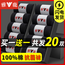 雅鹿袜子男士中筒纯棉防臭吸汗薄款短袜春夏季长袜黑色抗菌男袜