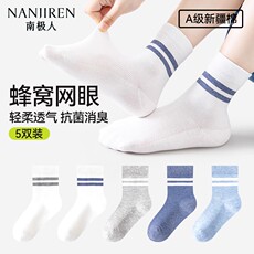 学生袜子男款女春夏新款中腰灰底中筒袜子学院风网眼儿童短袜纯棉