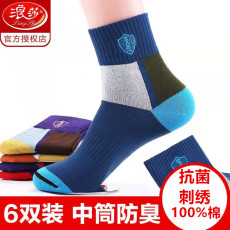 浪莎袜子男纯棉春秋款防脚气防臭吸汗秋冬季青少年学生运动中筒袜