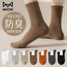 诸暨袜子男士中筒袜纯棉防臭100%全棉运动袜吸汗防臭秋冬男款棉袜