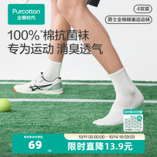 袜子男纯棉春秋中筒袜100%正品防臭吸汗抗菌运动透气白色男士袜子