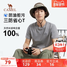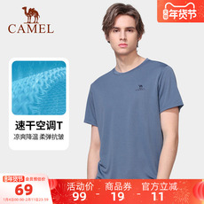 骆驼男装短袖t恤男款上衣夏透气中年爸爸纯色圆领上户外运动t恤
