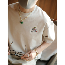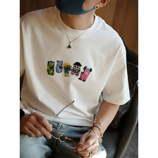 韩系原创设计趣味卡通刺绣短袖T恤男春夏潮流新款宽松痞帅圆领衫