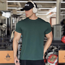 特价!高端夏季男士外贸圆领免烫运动健身休速干弹力透气短袖T恤