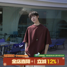 夏季高级感本命年酒红色圆领短袖T恤休闲针织体恤男百搭上衣半袖
