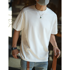 夏季潮流重磅短袖T恤男宽松休闲圆领设计感纯色百搭打底衫半袖潮
