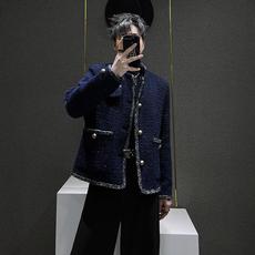 小众设计感无领短款小西装男士ins时髦设计宽松炸街黑色夹克外套