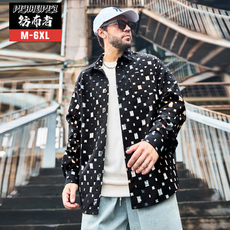 AK男装秋季复古翻领印花灯芯绒教练夹克男美式工装潮流百搭外套男