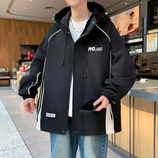 春秋款连帽外套男初中高中学生潮流帅气冲锋衣青少年大童工装夹克