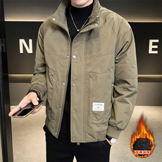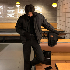 冬季新款休闲纯色薄棉服立领加棉夹克商务男外套韩版潮流修身棉服