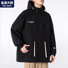 加肥加大码夹克男士2025春秋新款潮流宽松时尚防风连帽冲锋衣外套