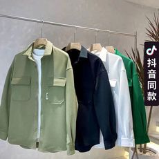 秋季新款翻领衬衫外套男士宽松针织衬衣男装潮流潮牌休闲夹克上衣