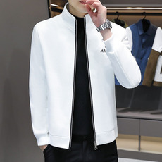 白色立领简约外套男士2024春季新款韩版潮流帅气修身夹克开衫上衣