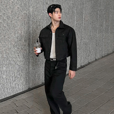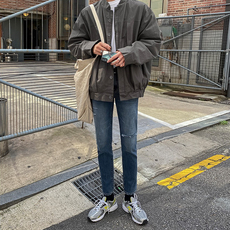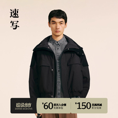 速写男装秋冬新款休闲宽松夹克立领短款拼接设计时尚潮流外套潮