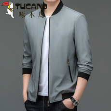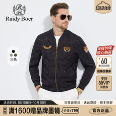 雷迪波尔男装夹克春秋季新款迷彩提花条纹棒球领修身潮流外套男