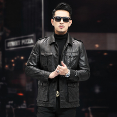 皮衣男真皮油蜡牛皮夹克猎装军旅秋季新款外套工装单潮流修身