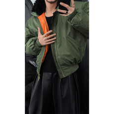 龙叨叨2024冬季新品美式高街连帽毛领飞行员夹克加厚保暖棉服外套