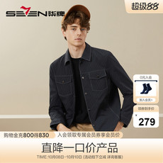 柒牌清仓男装翻领工装夹克秋冬时尚潮流青年满身印花男士外套