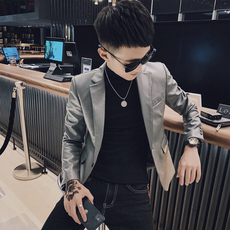 麂皮绒皮衣男春秋季韩版修身立领PU皮外套男简约休闲皮夹克男士潮