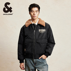 杰克琼斯夹克外套春季潮流男基础百搭仿羊羔毛拼接字母棉服男装