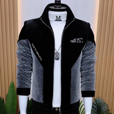 秋冬外套男立领拼色潮流短款男士夹克加绒加厚保暖精神小伙男装