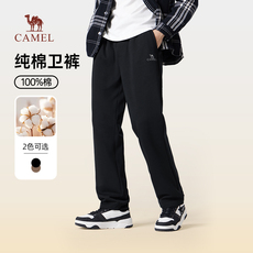 骆驼男装纯棉运动卫裤男士秋季黑色百搭宽松弹力束脚休闲长裤子